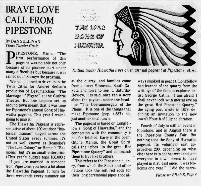 Song of Hiawatha Pageant - Old Newspaper Posting