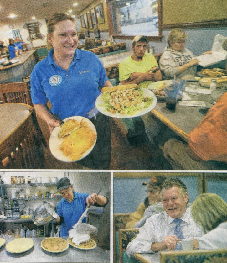 24/ 7 FOR 60 YEARS: Michelle Rowback, top, served the dinner rush at Lange's, and Charlotte Page, the head baker, above left, made the cafe's famed pies. Above right, owners Steve and Peg Lange had their morning coffee