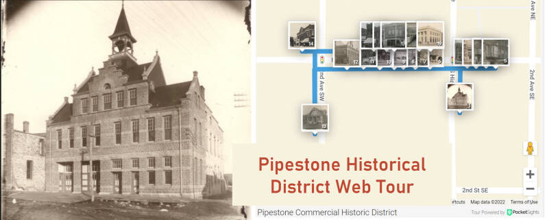 Pipestone Commercial Historic District was originally recognized by the National Register of Historic Places in 1976. The character of the district is derived from the extensive use of Sioux quartzite as a building material. Sioux quartzite is an exceedingly hard stone which varies in color from dark red to light pink depending on the location of the quarry.